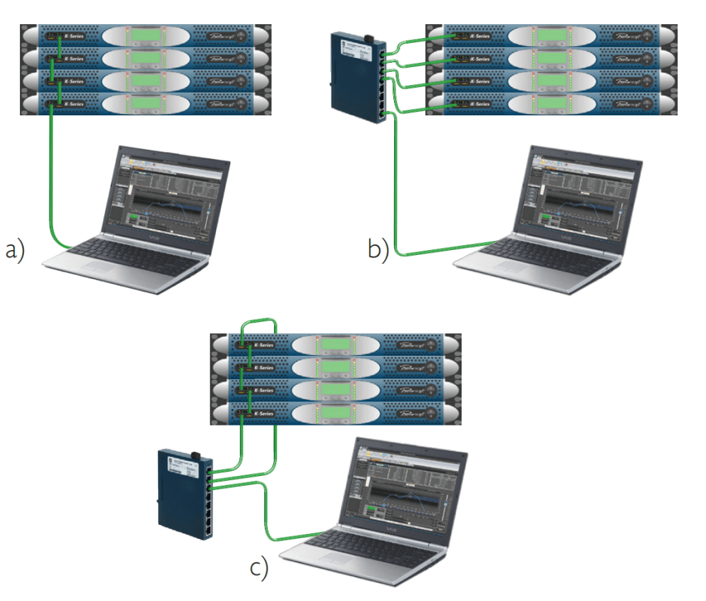 Collegamento in Daesy Chain dei vari processori direttamente al PC o tramite Switch, in alcuni casi controllabili anche via WiFi.