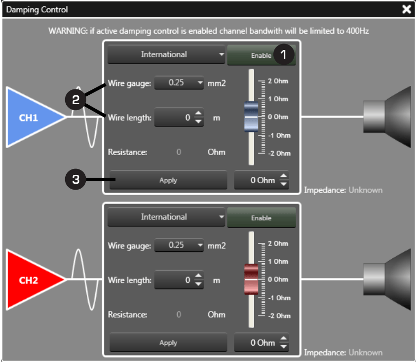 Il sistema monitora costantemente l’impedenza rilevata del diffusore/altoparlante e se l’impedenza supera determinate soglie limite (considerate come range di regime ottimale di funzionamento dell’altoparlante) notifica con un allarme che il sistema ha dei problemi. “Per questo si consiglia sempre di utilizzare sistemi multi amplificati (bi-amplificati, tri-amplificati, ecc..), cosi da avere un amplificatore ed un controllo diretto dei singoli altoparlanti.