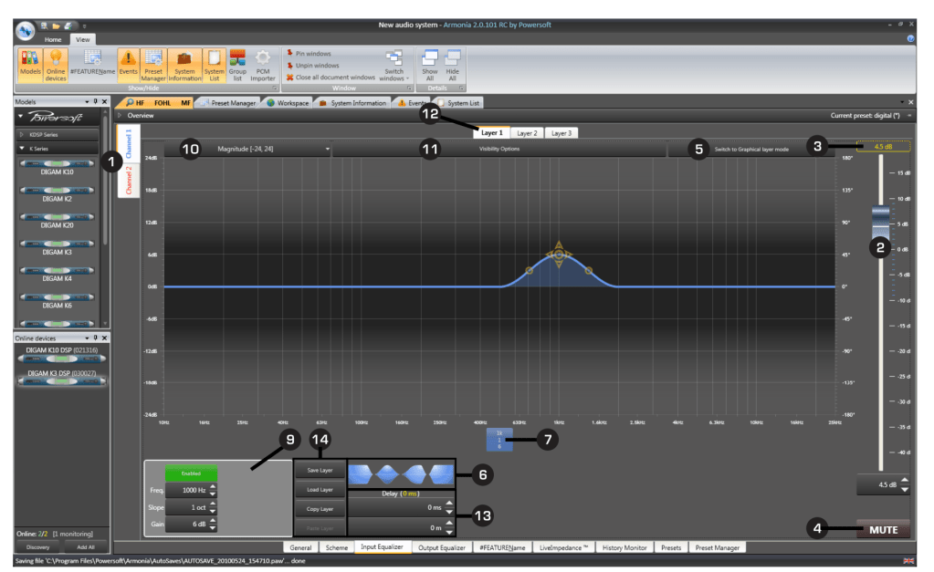 Lavorare con l’equalizzatore per lo stadio in ingresso al crossover elettronico. L’equalizzazione dello stadio di Input rispetto a quella di Output post-crossover, aiuta a bilanciare ed ottimizzare il taglio crossover elettronico che se troppo basso di livello genera uno sfasamento sul punto di crossover. Limitare il processamento di equalizzazione di uscita post-crossover alle piccole correzioni necessarie dovute agli interventi dei filtri.
