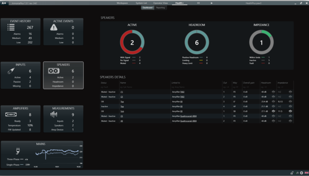 Attraverso il monitoraggio dell’Headroom è poi possibile sapere costantemente quanta tensione in uscita e quindi “volume” è possibile dare, se si può alzare il volume o se è già al massimo e quanto range si ha a disposizione.