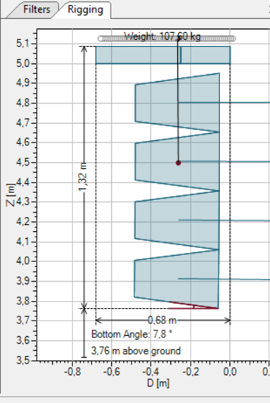 I software moderni hanno potenti tool di configurazione per la gestione del numero di sorgenti, posizionamento, angolature, livelli, ecc.. (fig. 11), consentono inoltre la visualizzazione diretta del sistema così da poter visualizzare i dati e la forma in tempo reale, con indicazioni e allerte anche sul peso e limiti strutturali di installazione.