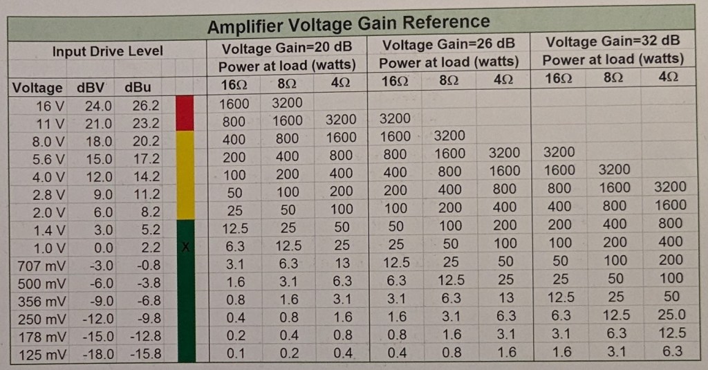 Gli amplificatori professionali sono tarati con riferimenti in Tensione (Gain regolabile) o con riferimento in Sensibilità (Gain fisso) e possono avere dei controlli in tensione mV, dBV o dBU (fig. 16 – 17).