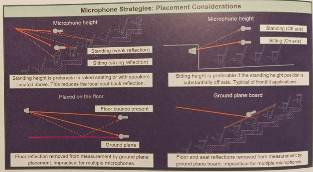 Come ordine di calibrazione prima il sistema più performante (P.A. Main) poi il sottosistema meno performante andando via via a sommare ed analizzare. La distanza e la copertura media più ampia ha la priorità su quelli che coprono aree più vicine, ridotte e con meno potenza (la priorità ce l’ha anche il caso di dover sonorizzare aree confinate in cui il pubblico paga un biglietto più costoso per vedere da vicino gli artisti ed avere un suono più qualitativo).