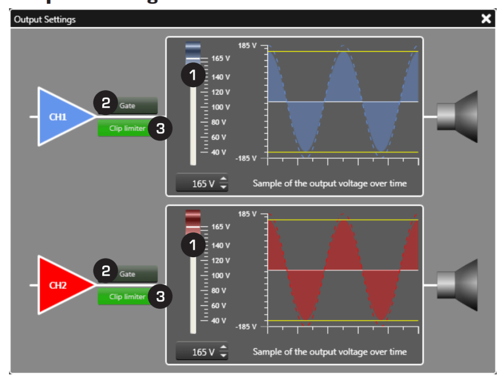 – Quando utilizzato impostare il limitatore (possibilmente Brickwall), (del DSP) al livello di Picco massimo dell’altoparlante per cui si può considerare + 6 dB rispetto alla potenza RMS dichiarata dal costruttore a meno di non conoscerne i dati esatti, così da poter sfruttare a pieno la potenza dinamica dell’altoparlante stesso. Utilizzare il limitatore alle uscite post crossover per ottimizzare la dinamica delle uscite stesse evitando di lavorare su frequenze in cui non è necessario.