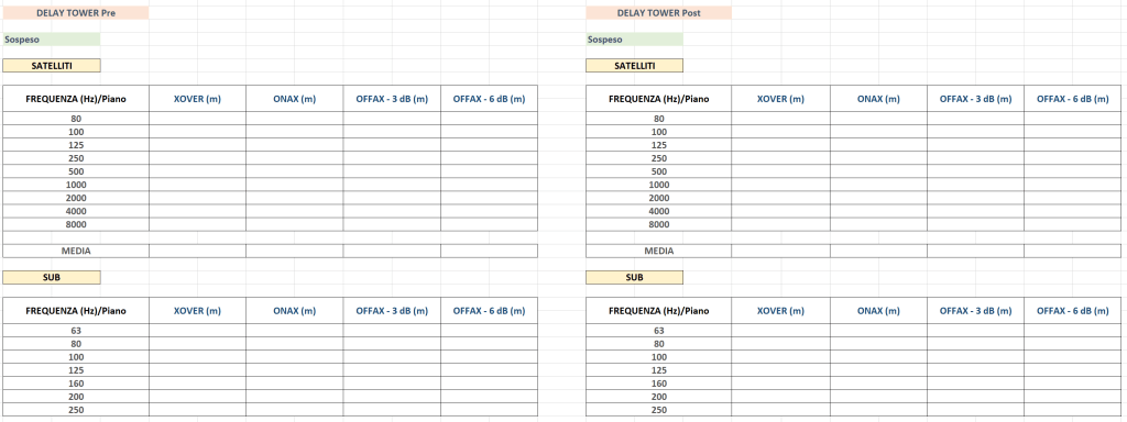 Per un sistema limitato e non ottimizzato (come anche per Sub a Terra) è probabile che la distanza del Delay Tower cada abbastanza ravvicinata e necessiti di ulteriori sistemi a breve distanza, se non si ha la possibilità di aggiungere sistemi sarà necessario trovare un compromesso e valutare la distanza che dia un calo omogeneo tra la perdita di livello fino al Delay Tower e la perdita di livello fino all’ultimo ricettore.
