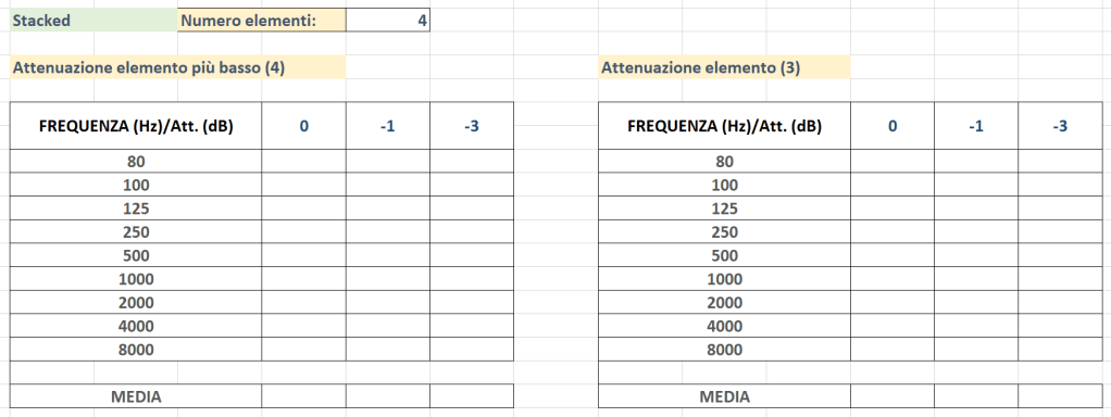 Se il livello SPL medio è superiore ai 119 dB o inferiore a 96 dB valutare numero elementi array e loro configurazione, grado di attenuazione, distanza primi ricettori, al fine di arrivare ad un livello ottimale.