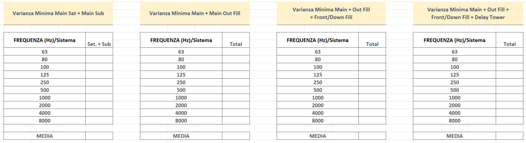 Come si noterà, per la maggior parte dei progetti di un ambiente medio – piccolo basterà l’ottimizzazione di configurazione di un Main Satelliti + Sub + Front Fill XOVER. Mentre per progetti di ambiente grandi l’inserimento di Out Fill e Delay Tower permetterà di raggiungere risultati a più bassa varianza.
