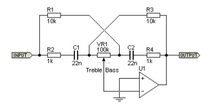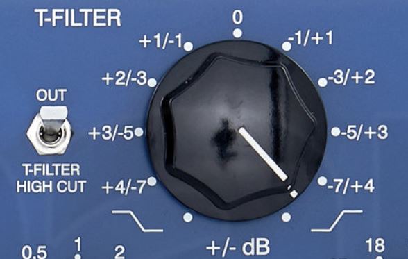 Il T-Filter (fig. 1) o Tilt Filter, è una variante del filtro Shelving tendenzialmente Attivo, utilizzato a livello analogico in media frequenza mentre a livello software come vedremo su di una qualsiasi banda selezionabile, per via delle caratteristiche che offre, con cui è possibile amplificare la banda di frequenze dopo una frequenza centrale selezionata e contemporaneamente attenuare la banda precedente, e viceversa a seconda della posizione del potenziometro, mantenendo armonicità di fase e quindi anche meno distorsioni rispetto all’utilizzo come vedremo di un Parametrico.