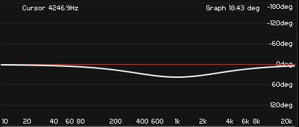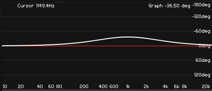 Per quanto riguarda la fase (fig. 4), si ottiene l’esatta copia sfasata se lo si fa lavorare in un senso o nell’altro, e la deviazioni di fase è derivata dalla somma delle singole deviazione di fase del filtro Low Shelf e High Shelf, che rispecchia un andamento di fase tipico dei filtri Shelving.